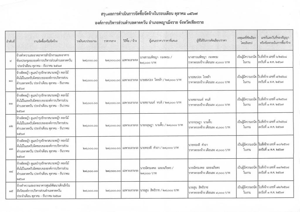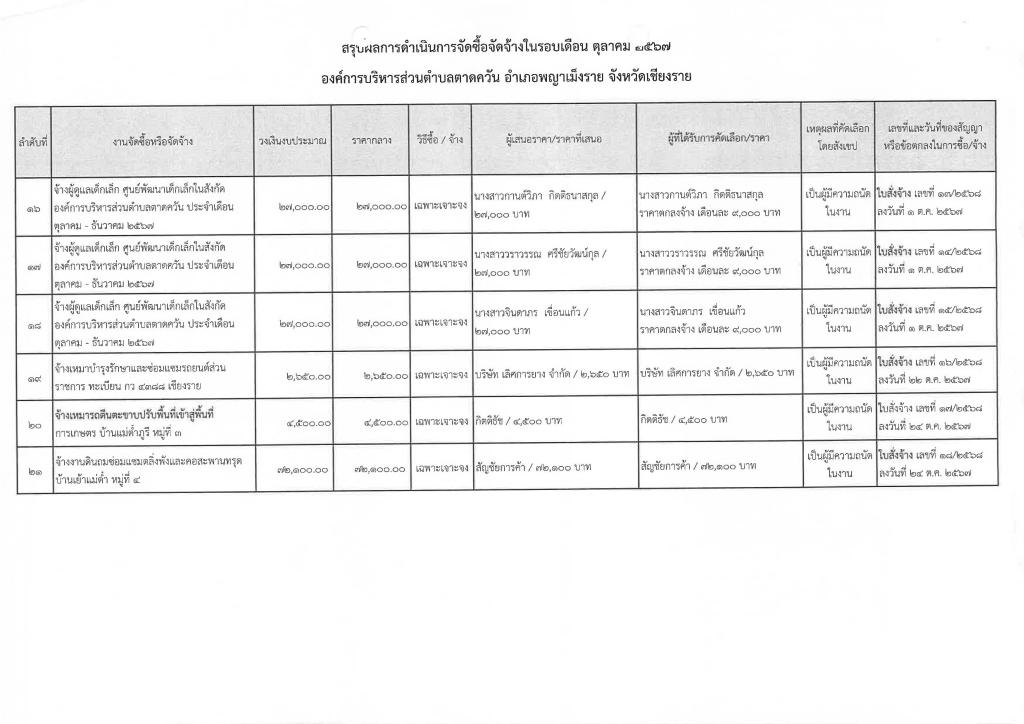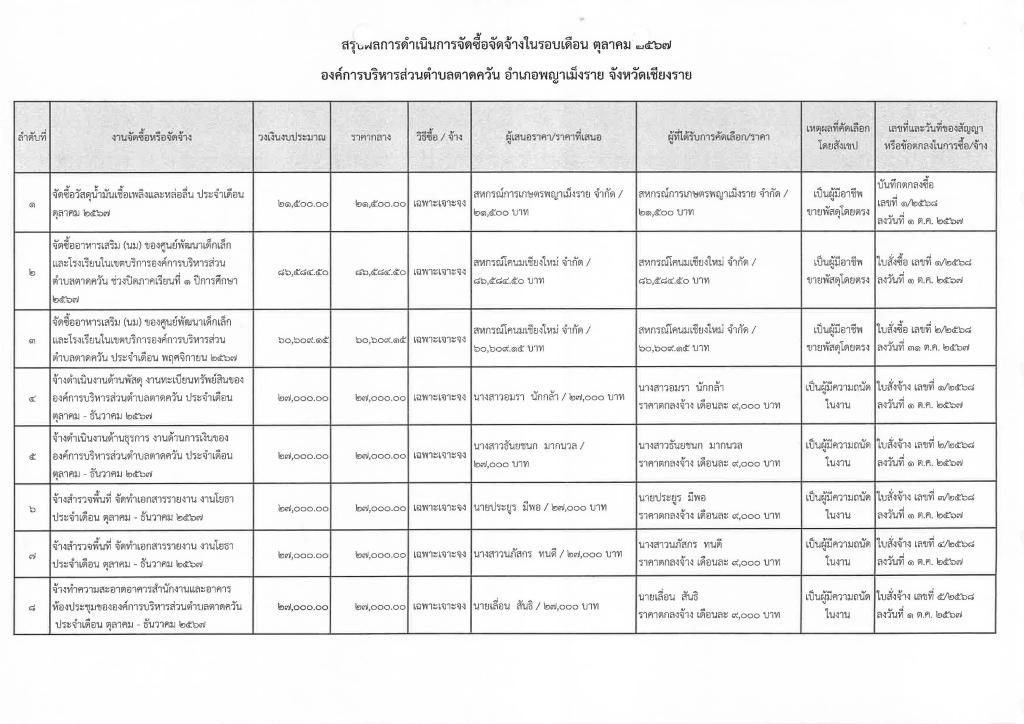 รายงานสรุปผลการดำเนินการจัดซื้อจัดจ้าง ประจำเดือน ตุลาคม 2567
