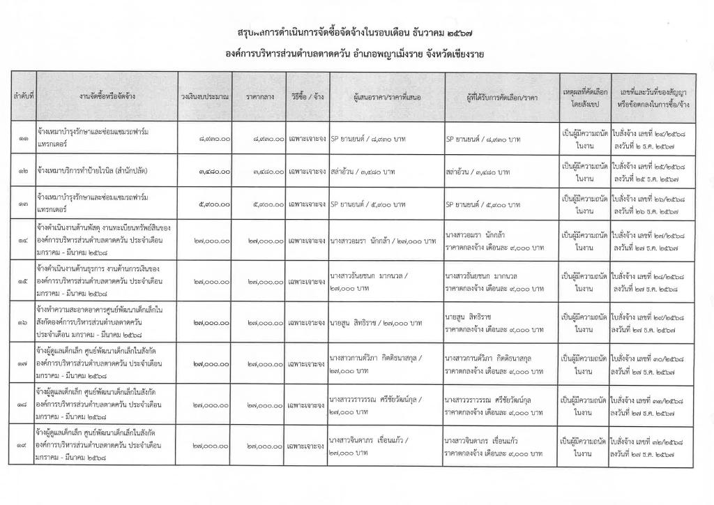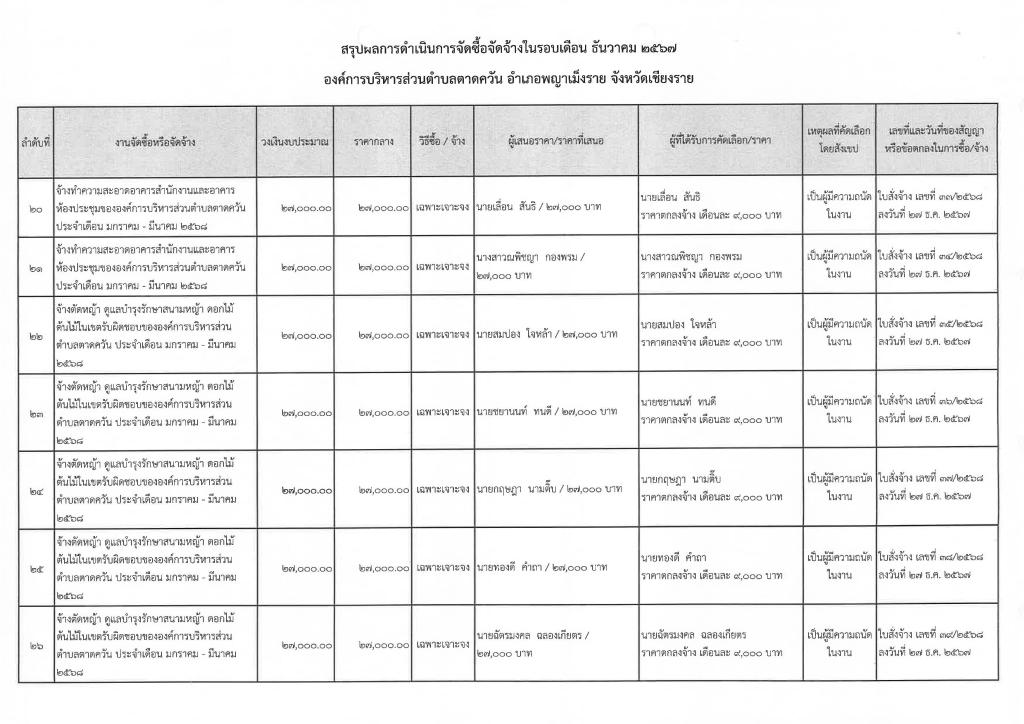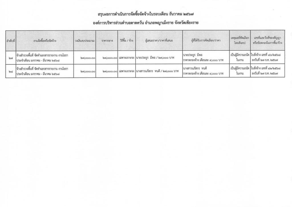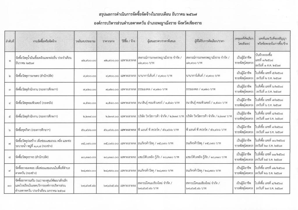 รายงานสรุปผลการดำเนินการจัดซื้อจัดจ้าง ประจำเดือน ธันวาคม 2567