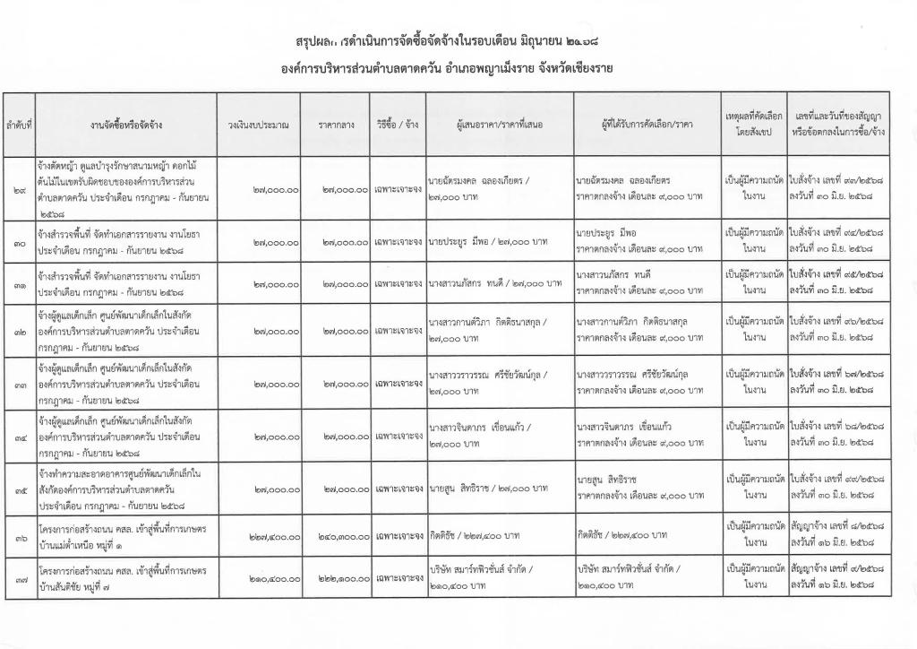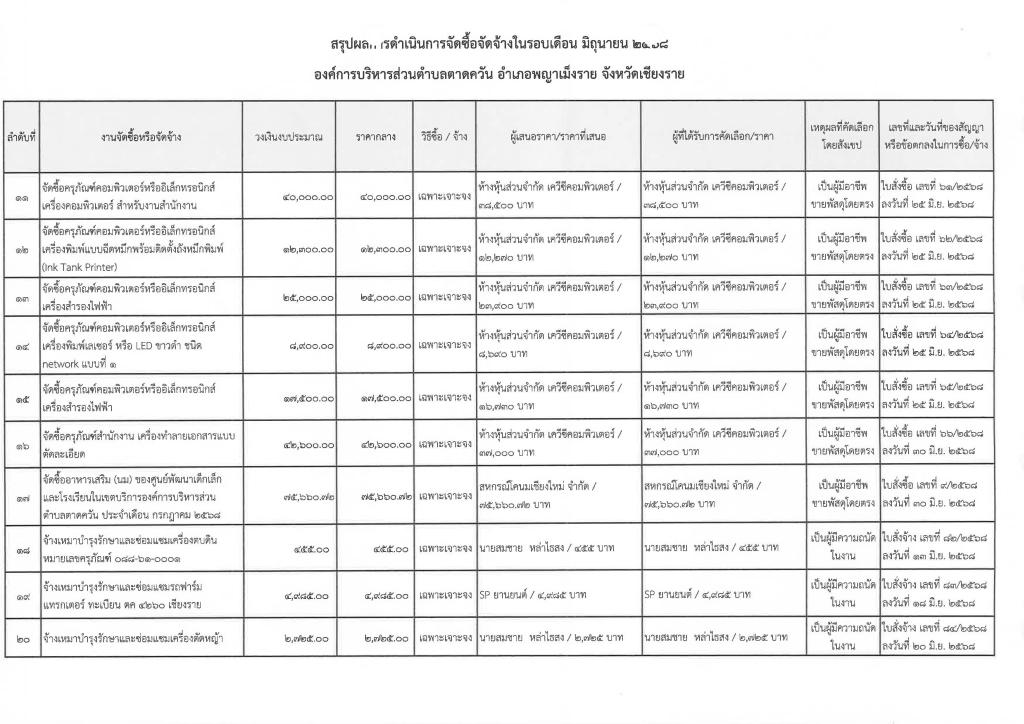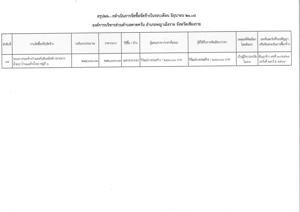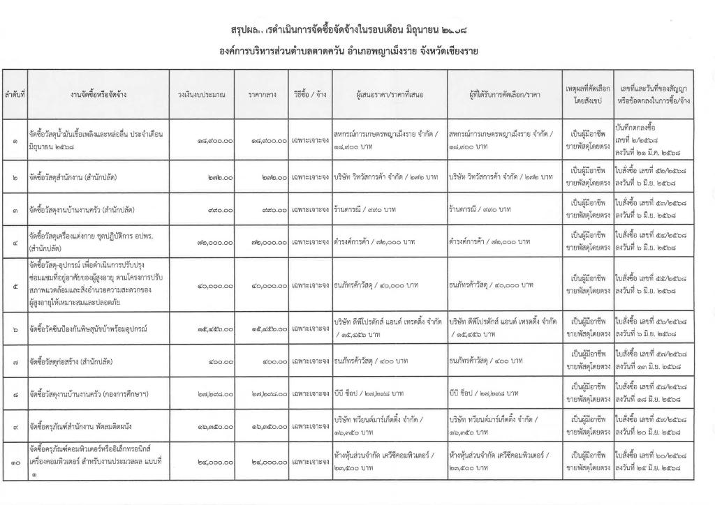 รายงานสรุปผลการดำเนินการจัดซื้อจัดจ้าง ประจำเดือน มิถุนายน 2568
