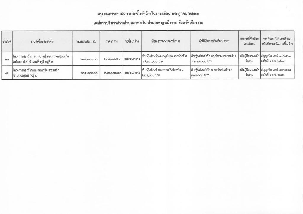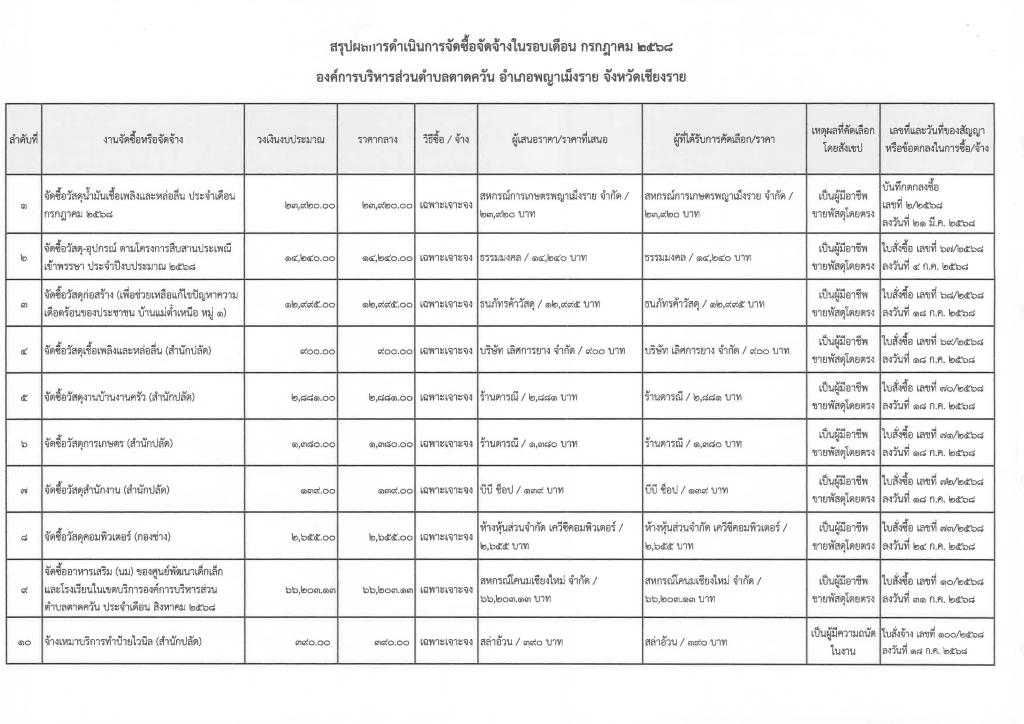รายงานสรุปผลการดำเนินการจัดซื้อจัดจ้าง ประจำเดือน กรกฎาคม 2568