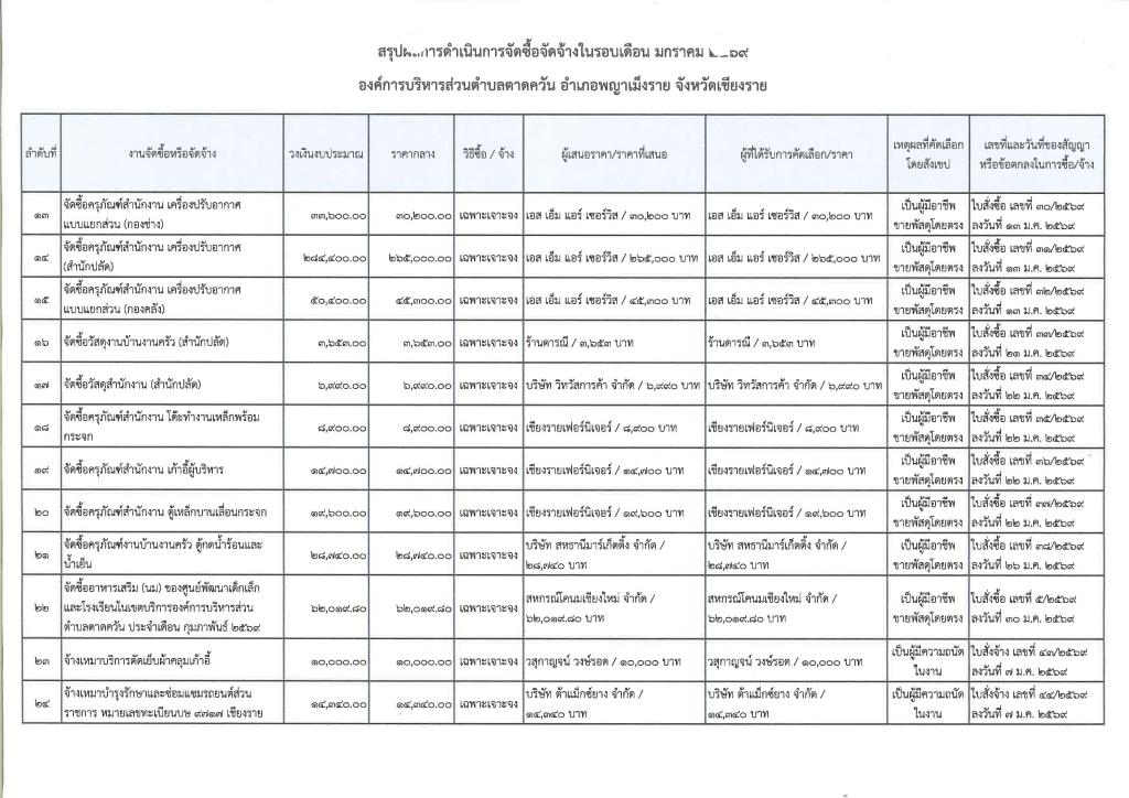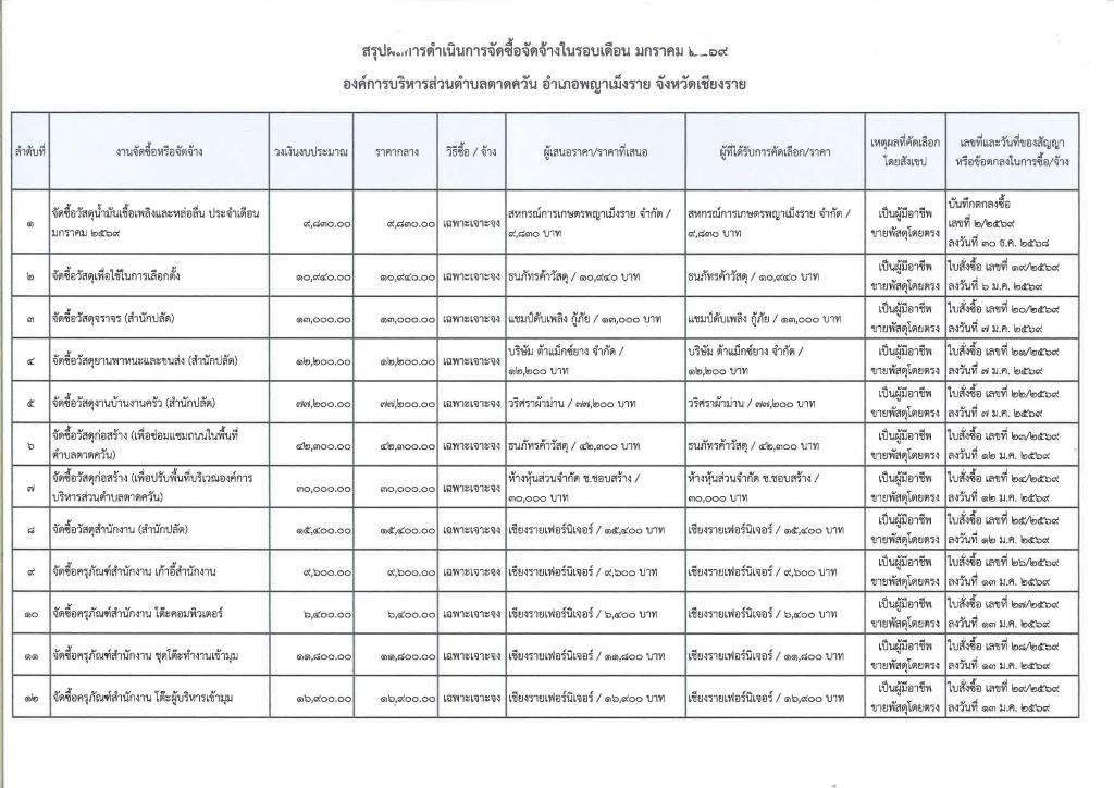 รายงานสรุปผลการดำเนินการจัดซื้อจัดจ้าง ประจำเดือน มกราคม 2569
