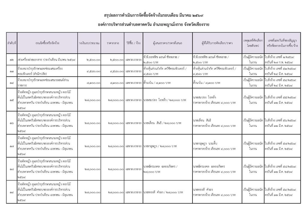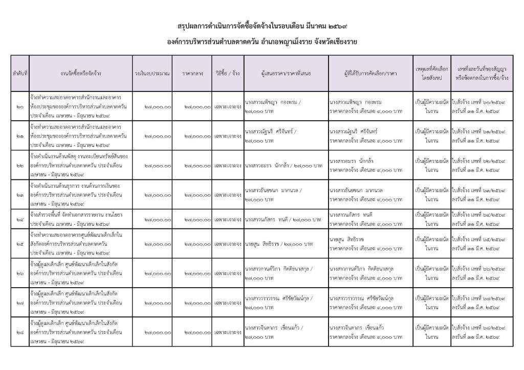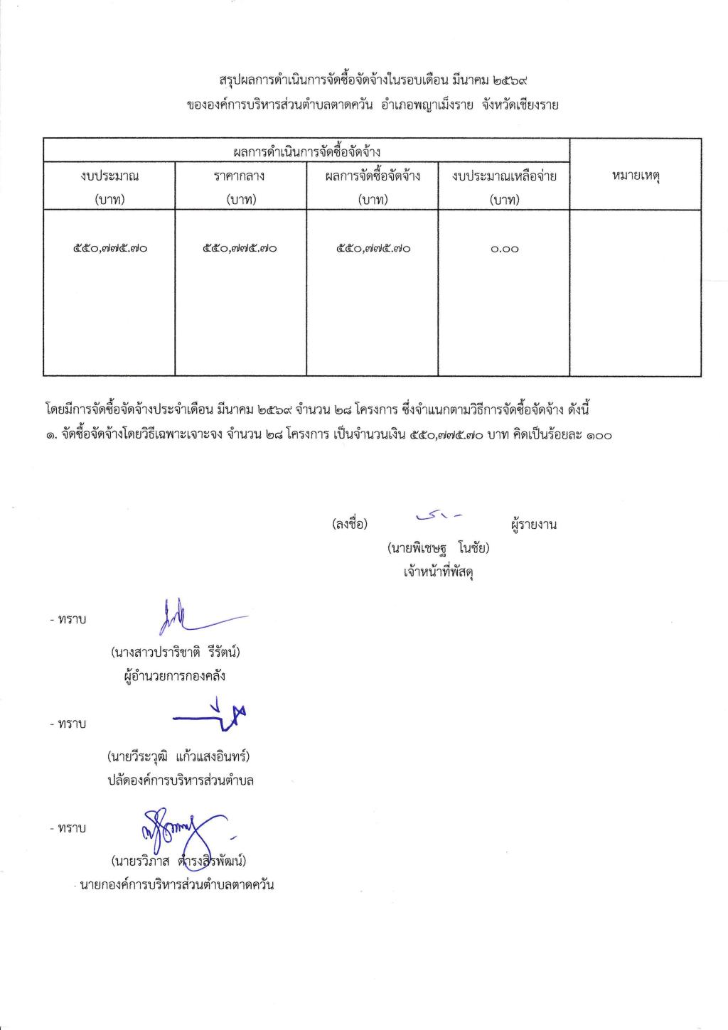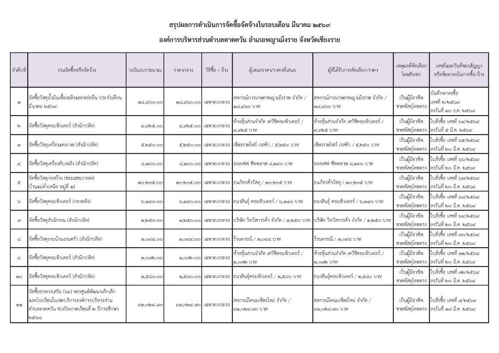 รายงานสรุปผลการดำเนินการจัดซื้อจัดจ้าง ประจำเดือน มีนาคม พ.ศ. 2569