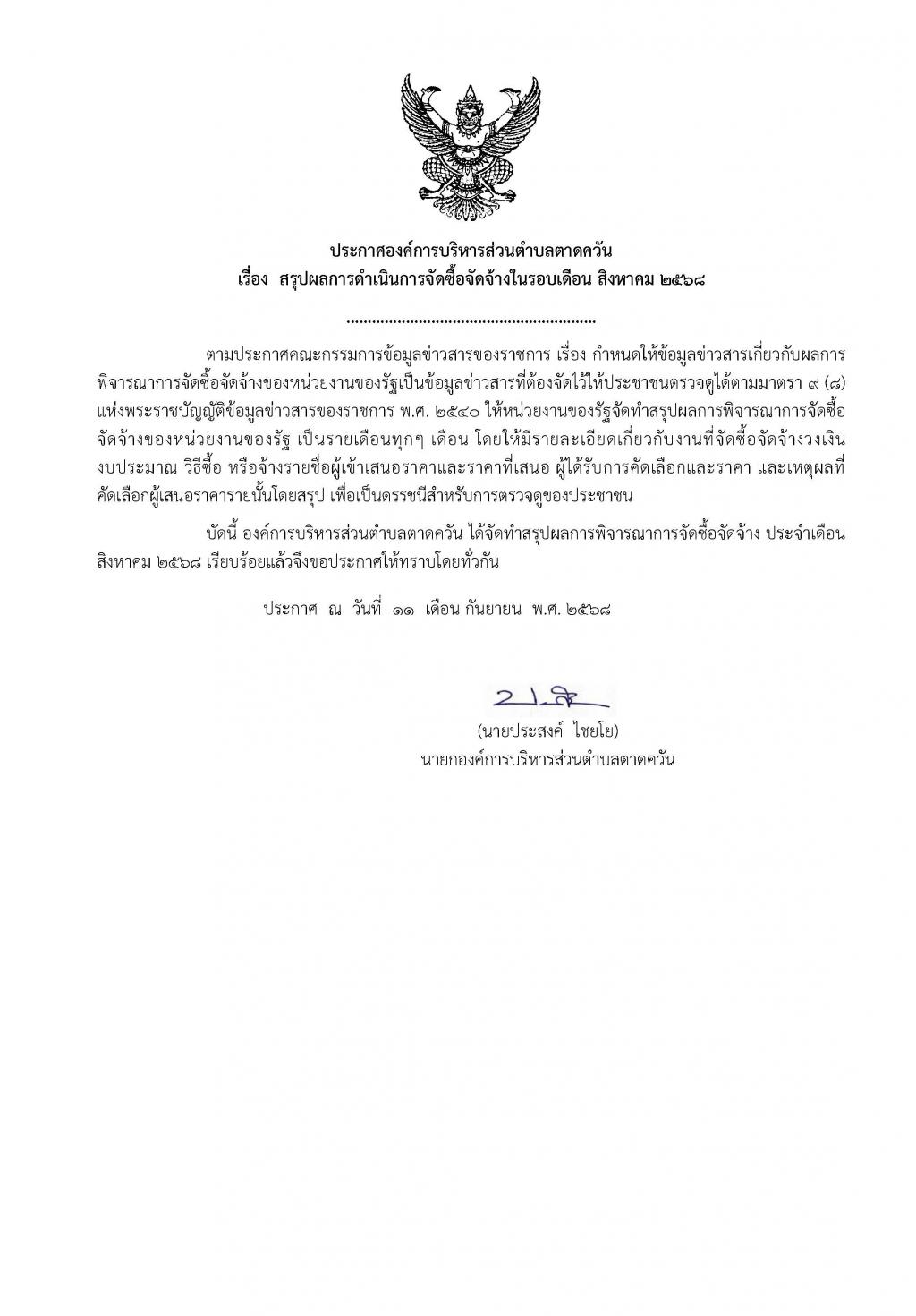 รายงานสรุปผลการดำเนินการจัดซื้อจัดจ้าง ประจำเดือน สิงหาคม พ.ศ. 2568...