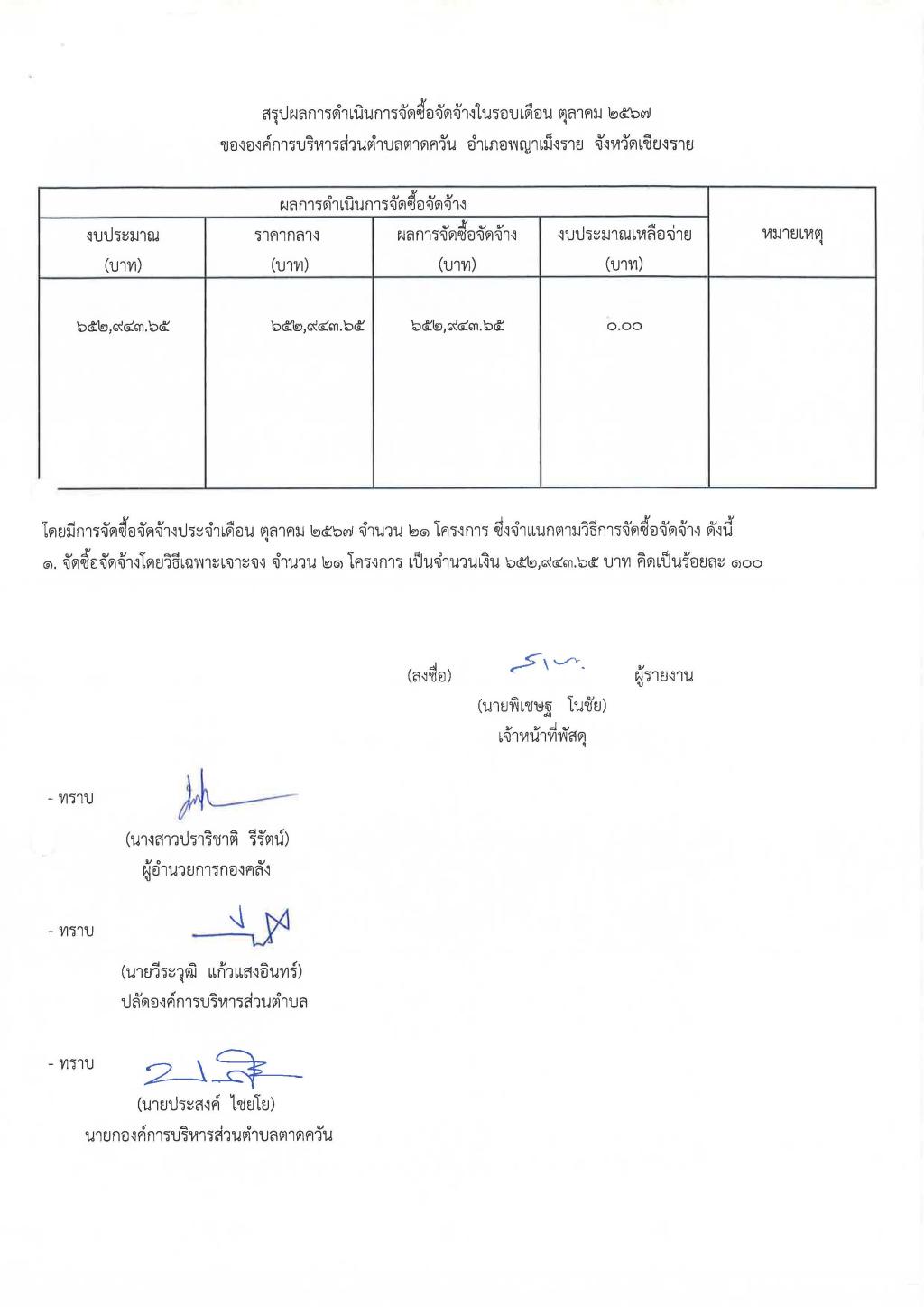 รายงานสรุปผลการดำเนินการจัดซื้อจัดจ้าง ประจำเดือน ตุลาคม 2567...