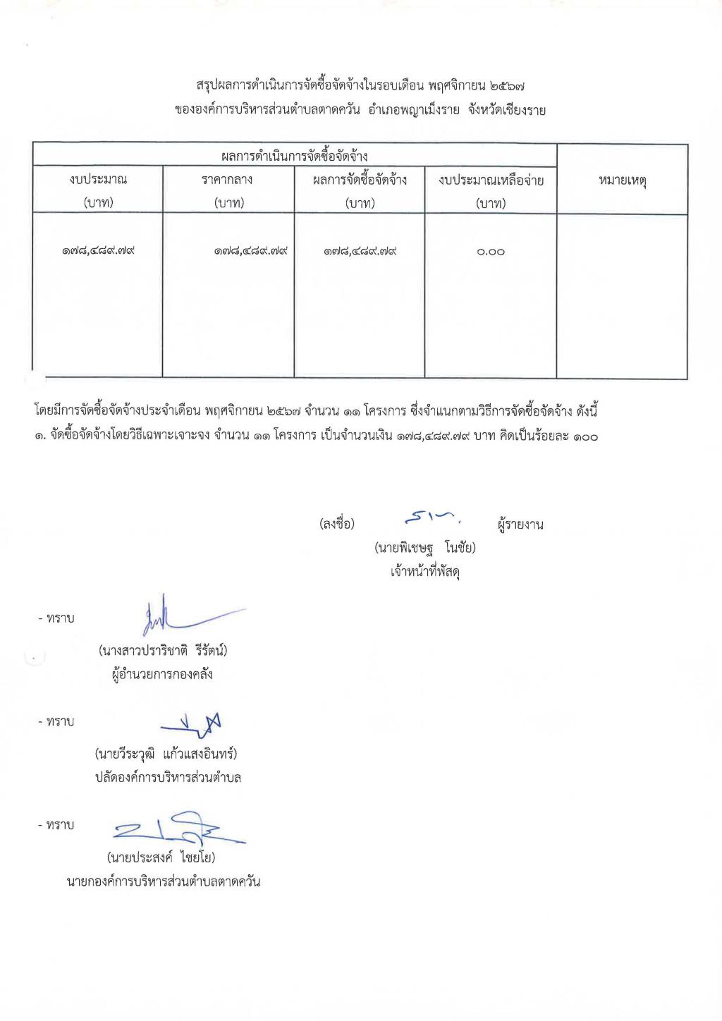 รายงานสรุปผลการดำเนินการจัดซื้อจัดจ้าง ประจำเดือน พฤศจิกายน 2567...
