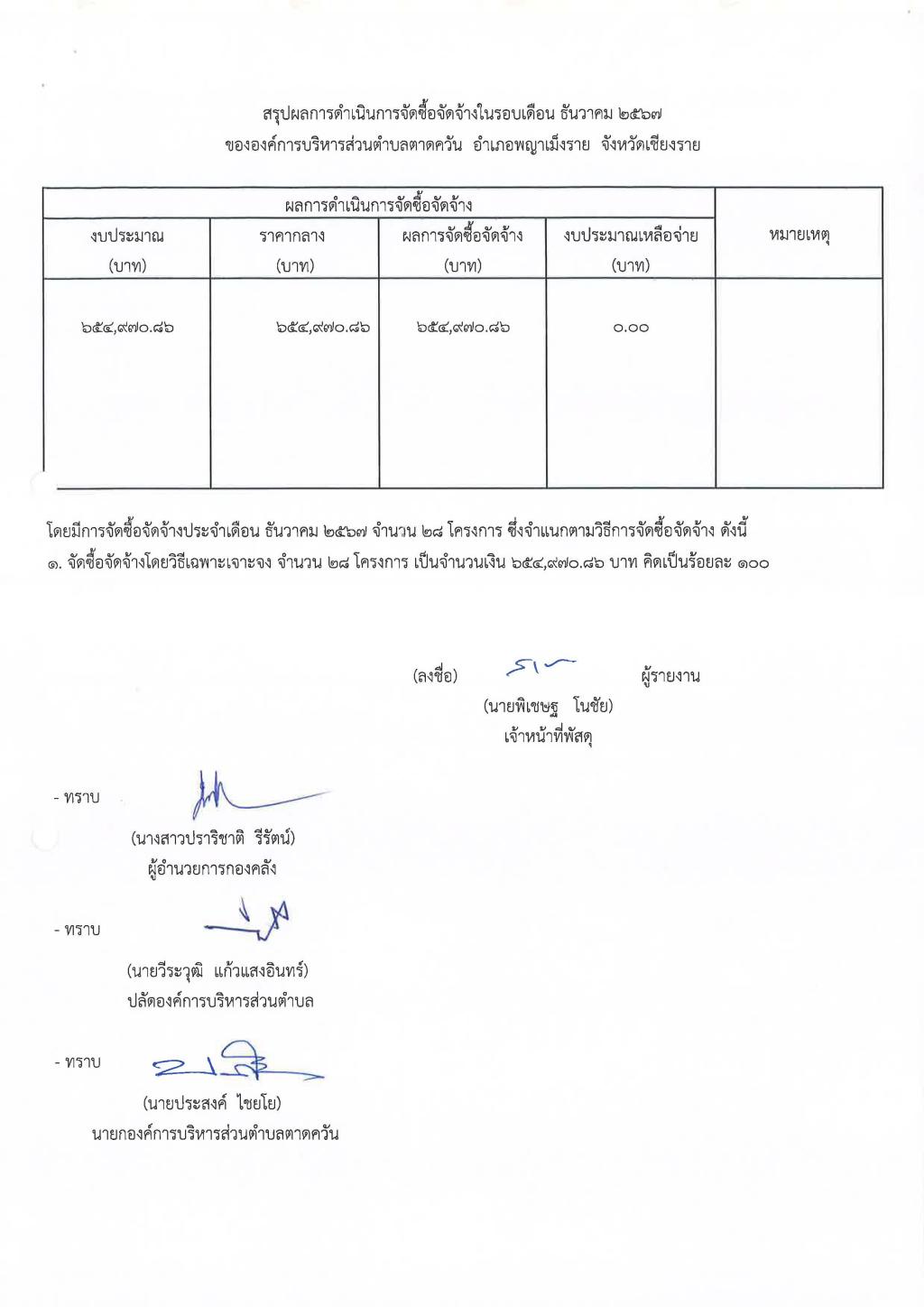 รายงานสรุปผลการดำเนินการจัดซื้อจัดจ้าง ประจำเดือน ธันวาคม 2567...