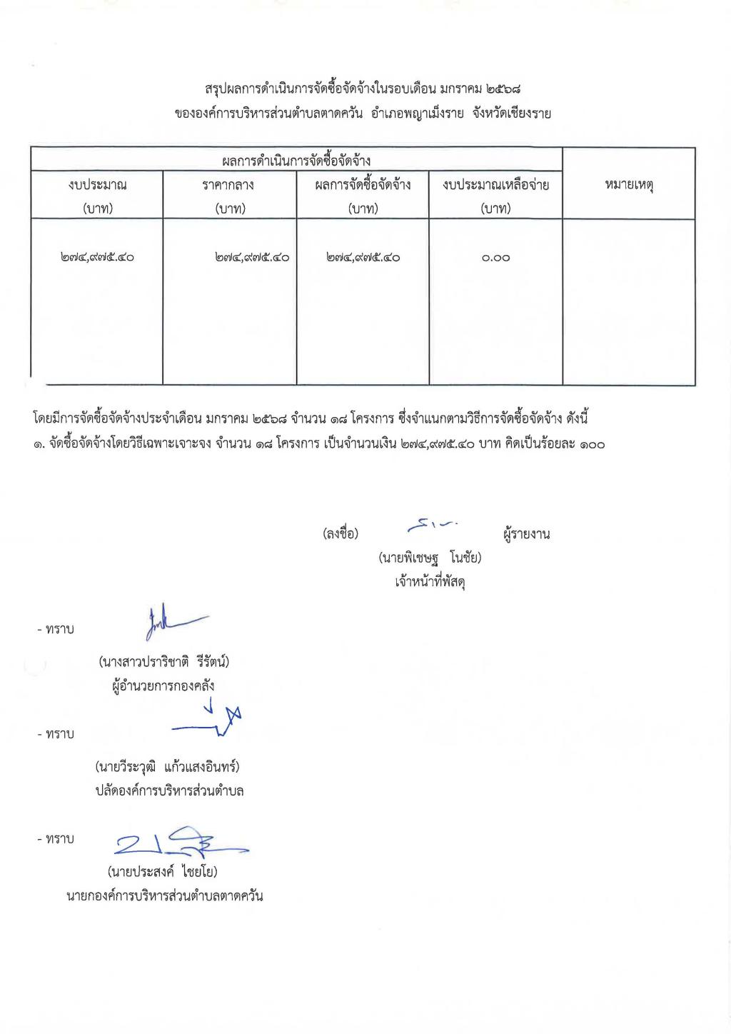 รายงานสรุปผลการดำเนินการจัดซื้อจัดจ้าง ประจำเดือน มกราคม 2568...