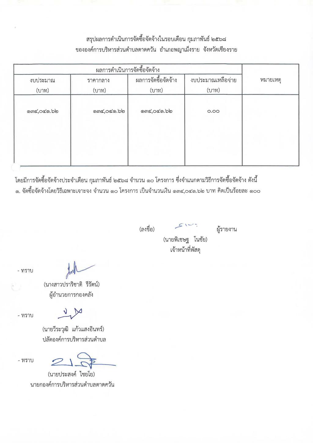 รายงานสรุปผลการดำเนินการจัดซื้อจัดจ้าง ประจำเดือน กุมภาพันธ์ 2568...