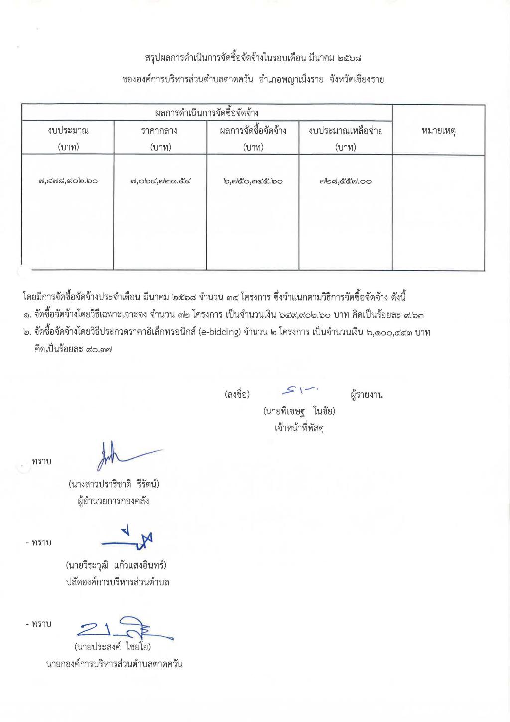 รายงานสรุปผลการดำเนินการจัดซื้อจัดจ้าง ประจำเดือน มีนาคม 2568...