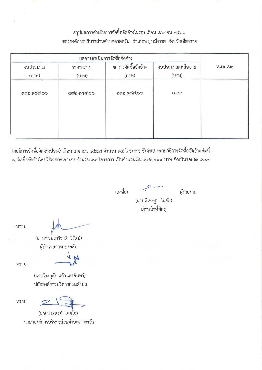 รายงานสรุปผลการดำเนินการจัดซื้อจัดจ้าง ประจำเดือน เมษายน 2568...
