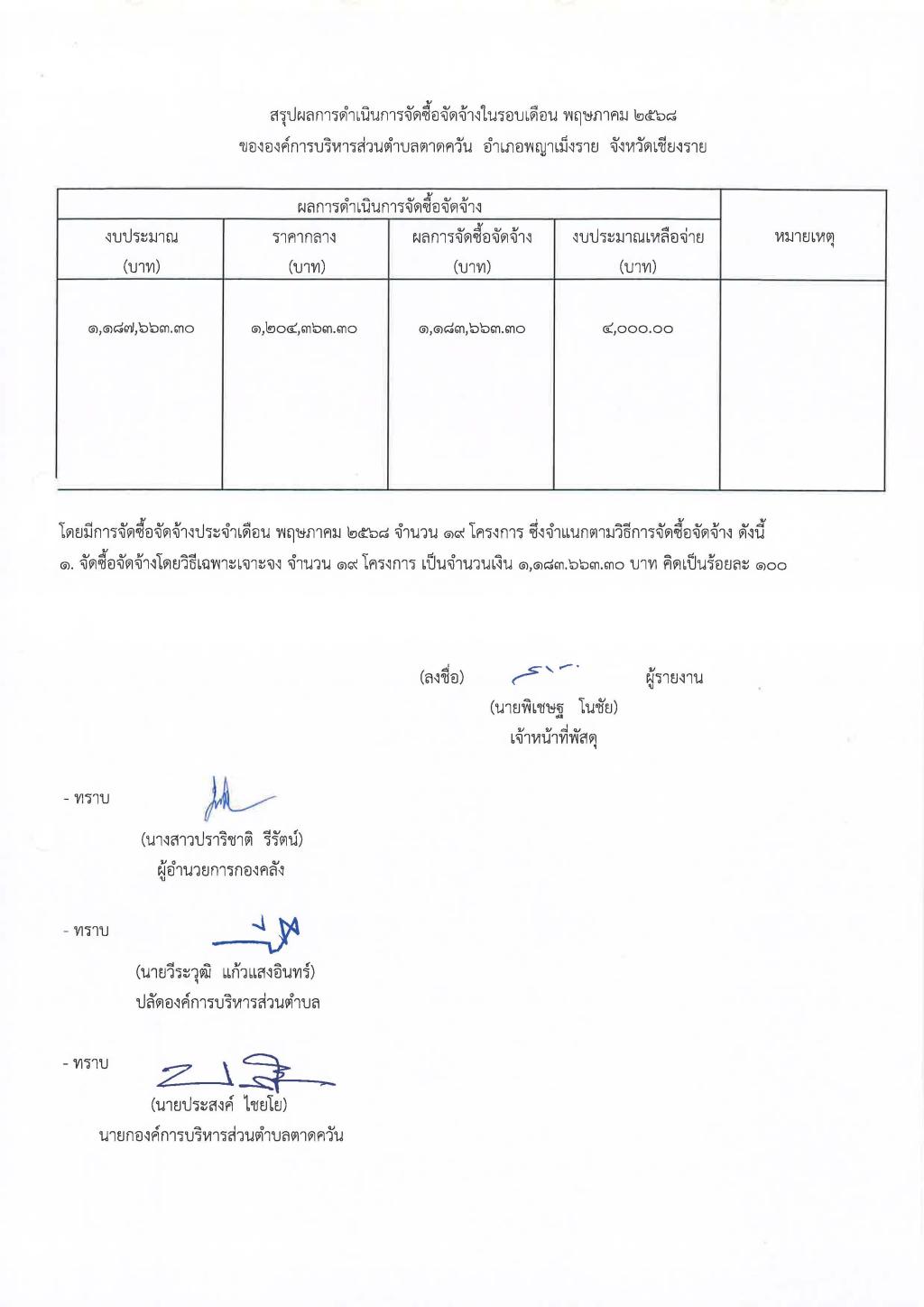 รายงานสรุปผลการดำเนินการจัดซื้อจัดจ้าง ประจำเดือน พฤษภาคม 2568...