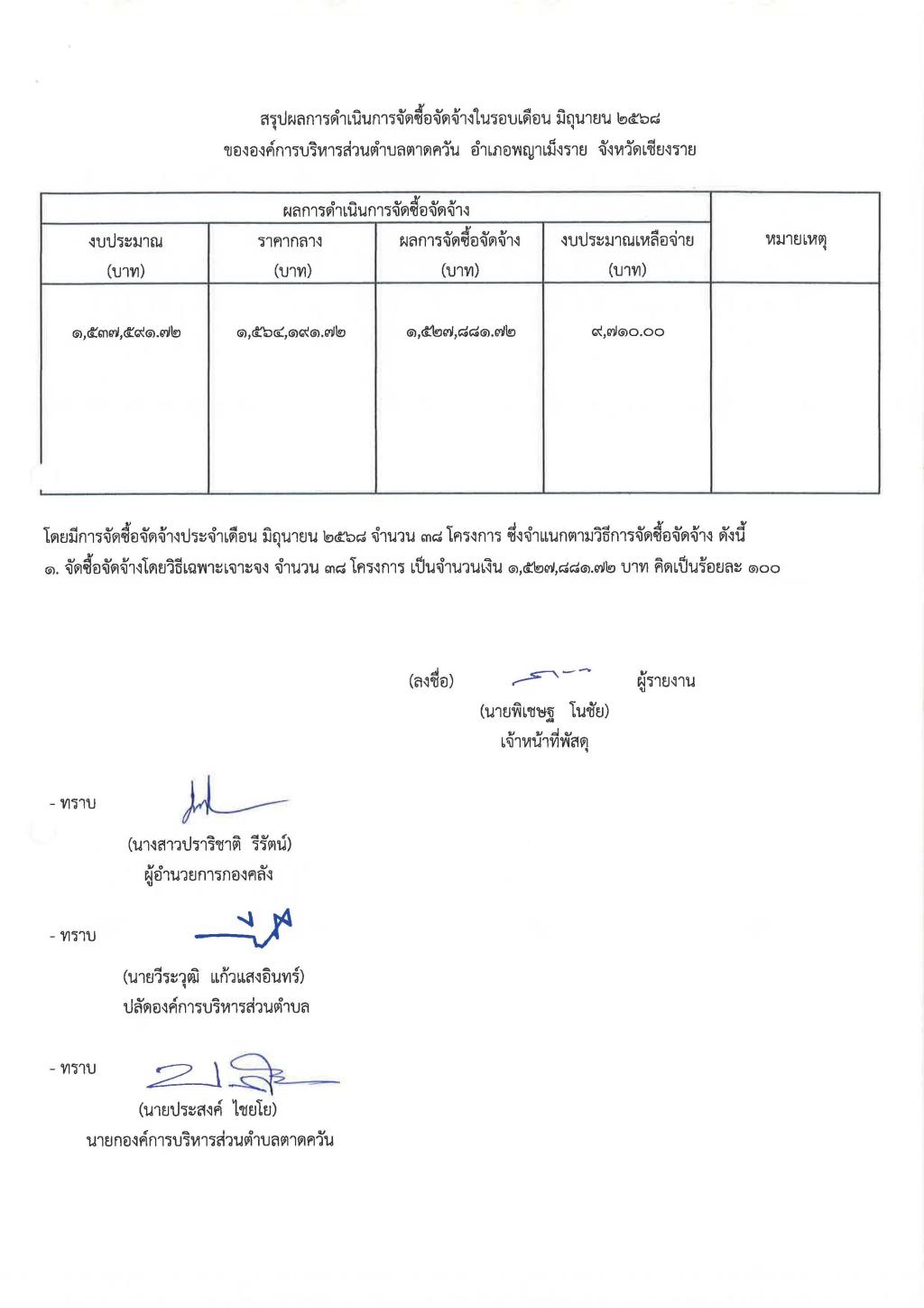 รายงานสรุปผลการดำเนินการจัดซื้อจัดจ้าง ประจำเดือน มิถุนายน 2568...