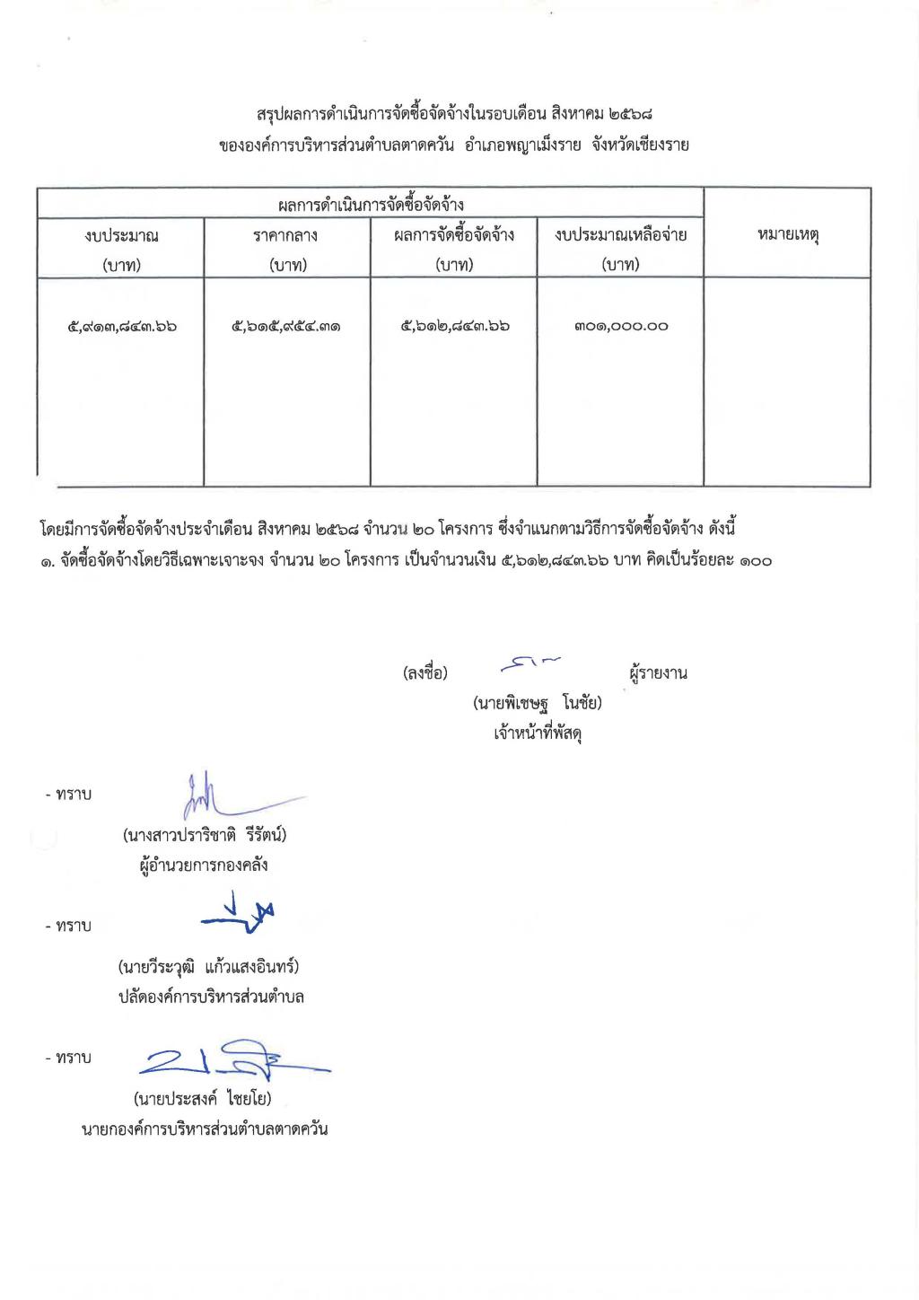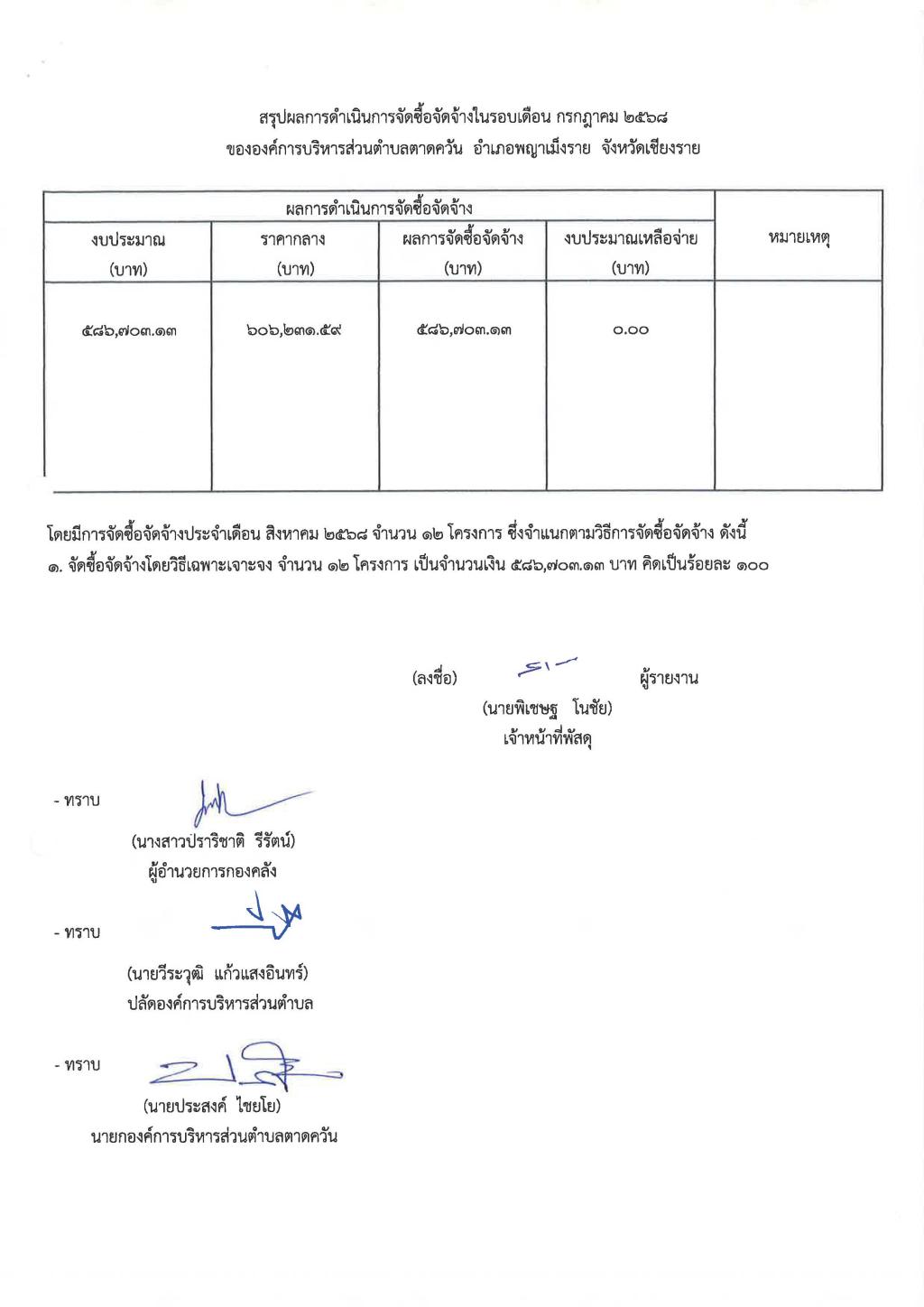 รายงานสรุปผลการดำเนินการจัดซื้อจัดจ้าง ประจำเดือน สิงหาคม 2568...