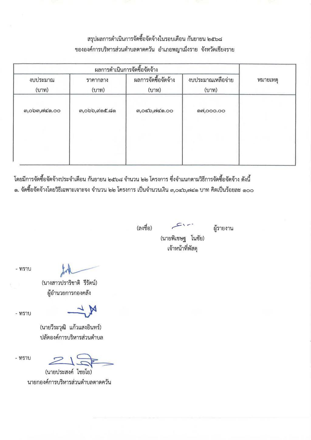 รายงานสรุปผลการดำเนินการจัดซื้อจัดจ้าง ประจำเดือน กันยายน 2568...