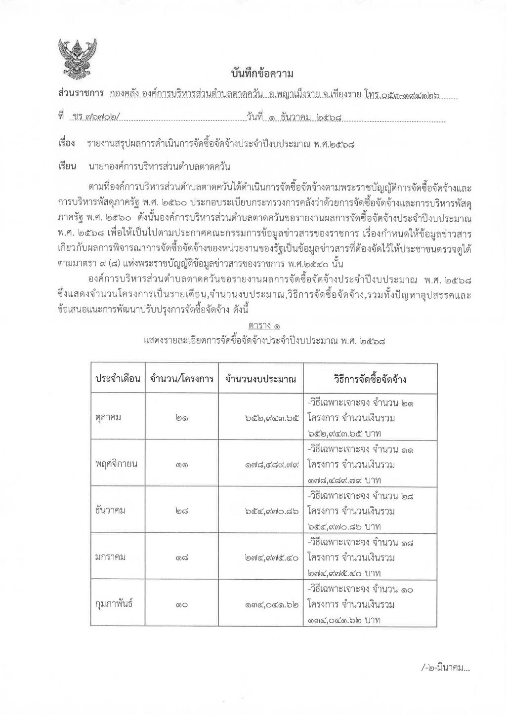 รายงานสรุปผลการดำเนินการจัดซื้อจัดจ้าง ประจำปีงบประมาณ พ.ศ. 2568...
