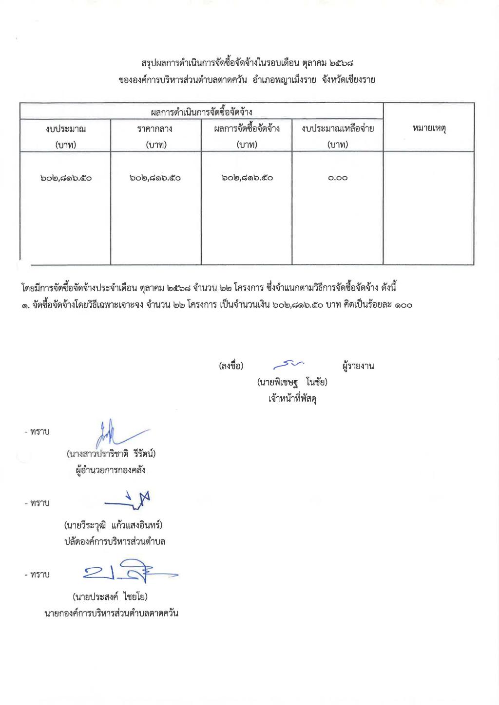 รายงานสรุปผลการดำเนินการจัดซื้อจัดจ้าง ประจำเดือน ตุลาคม 2568...