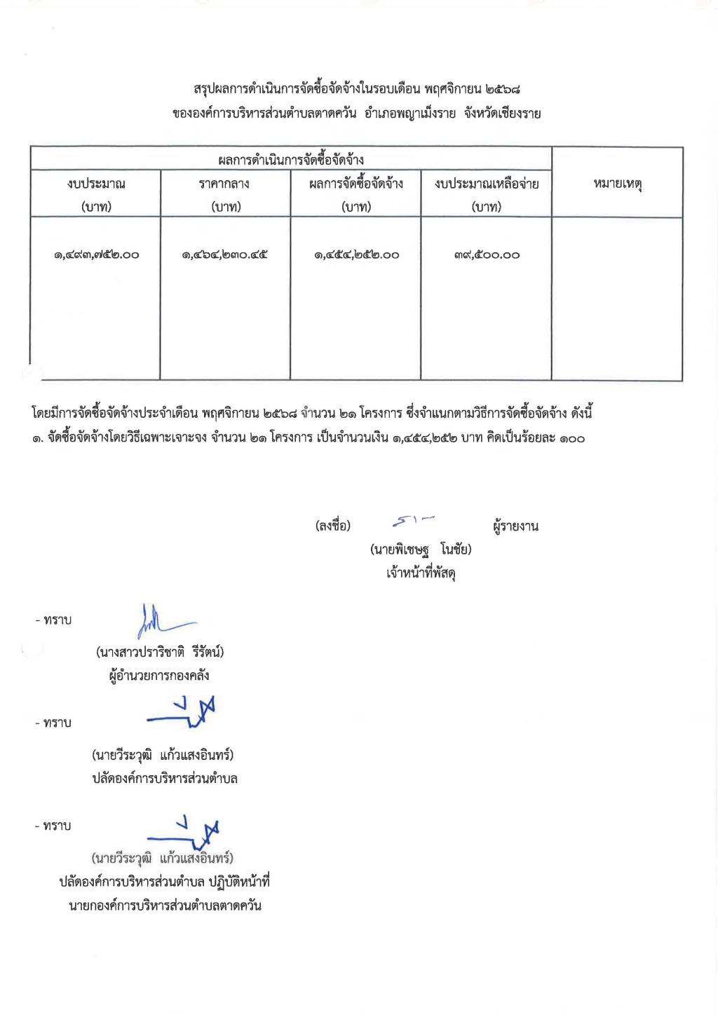 รายงานสรุปผลการดำเนินการจัดซื้อจัดจ้าง ประจำเดือน พฤศจิกายน 2568...