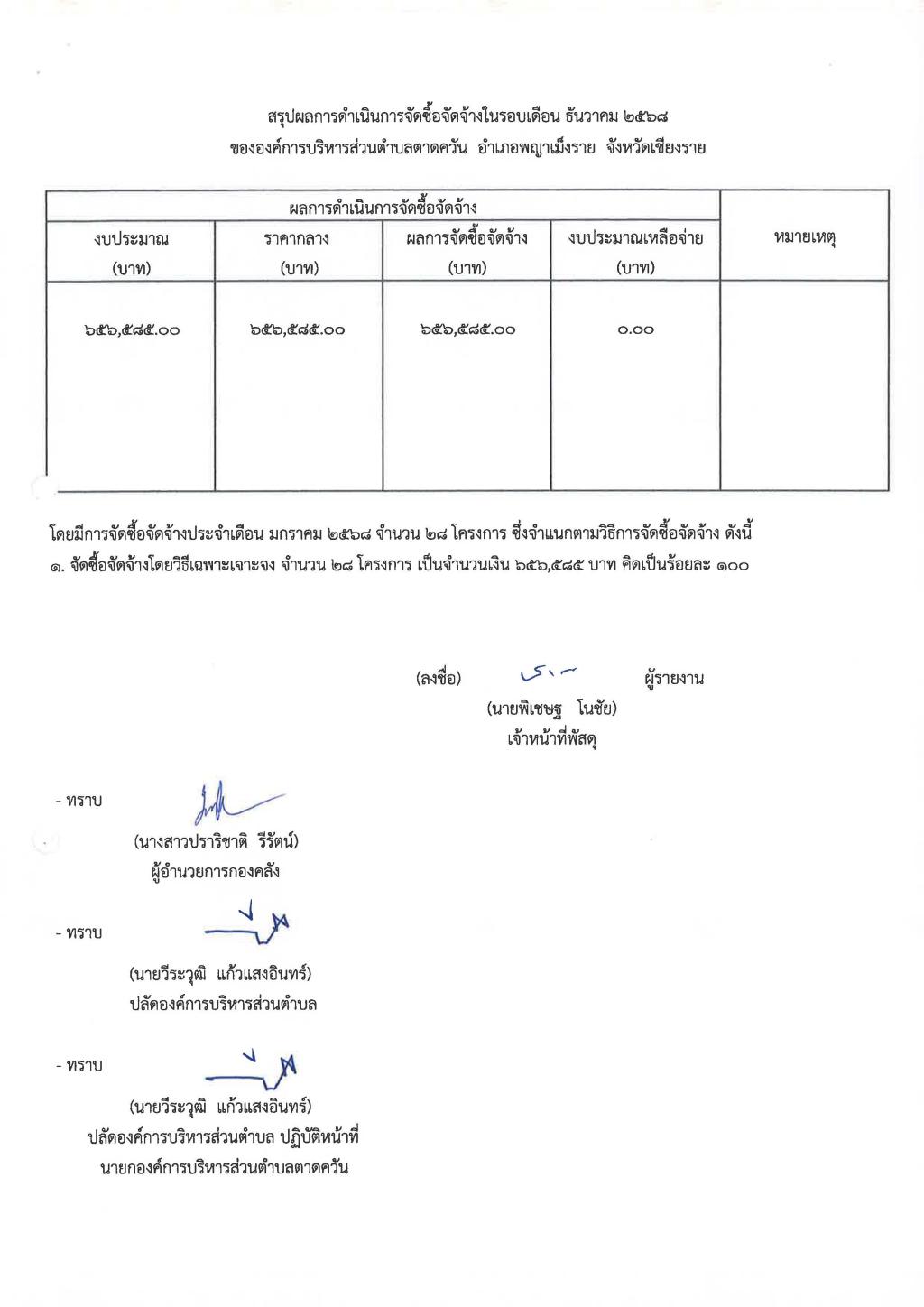 รายงานสรุปผลการดำเนินการจัดซื้อจัดจ้าง ประจำเดือน ธันวาคม 2568...