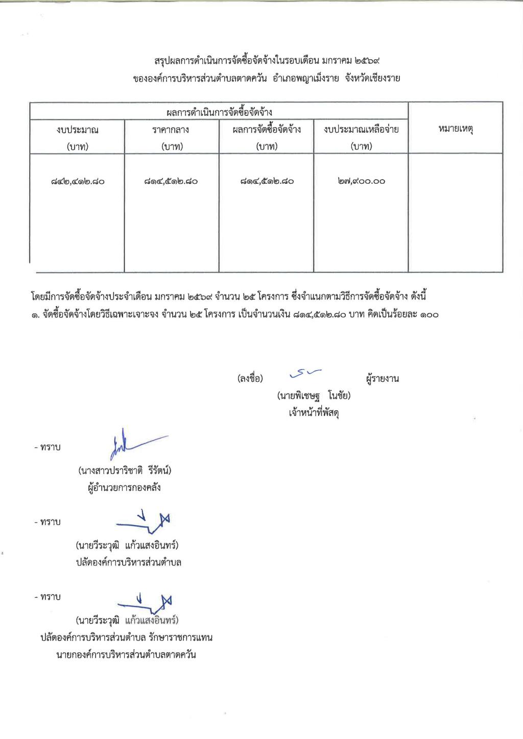 รายงานสรุปผลการดำเนินการจัดซื้อจัดจ้าง ประจำเดือน มกราคม 2569...