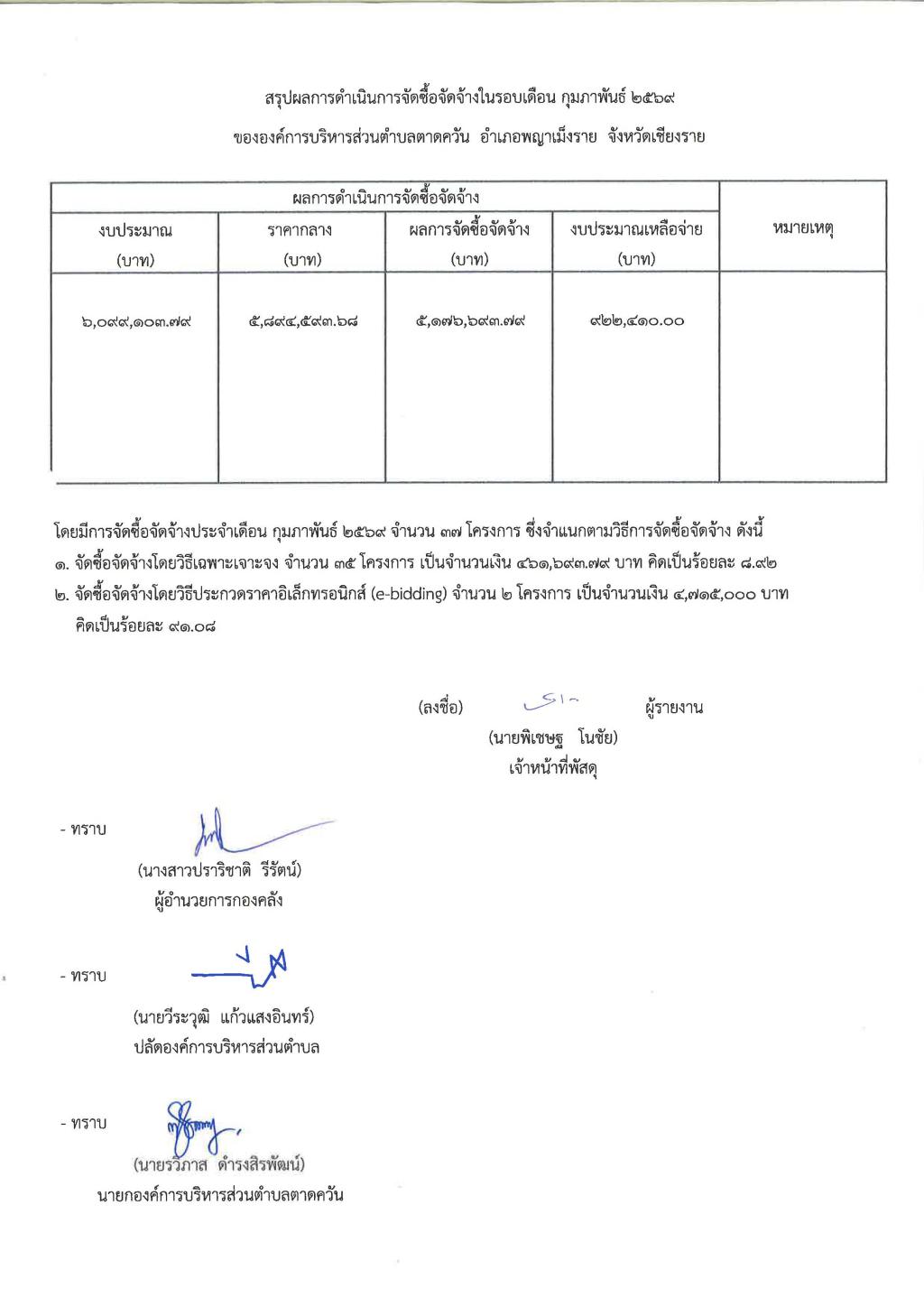 รายงานสรุปผลการดำเนินการจัดซื้อจัดจ้าง ประจำเดือน กุมภาพันธ์ 2569...